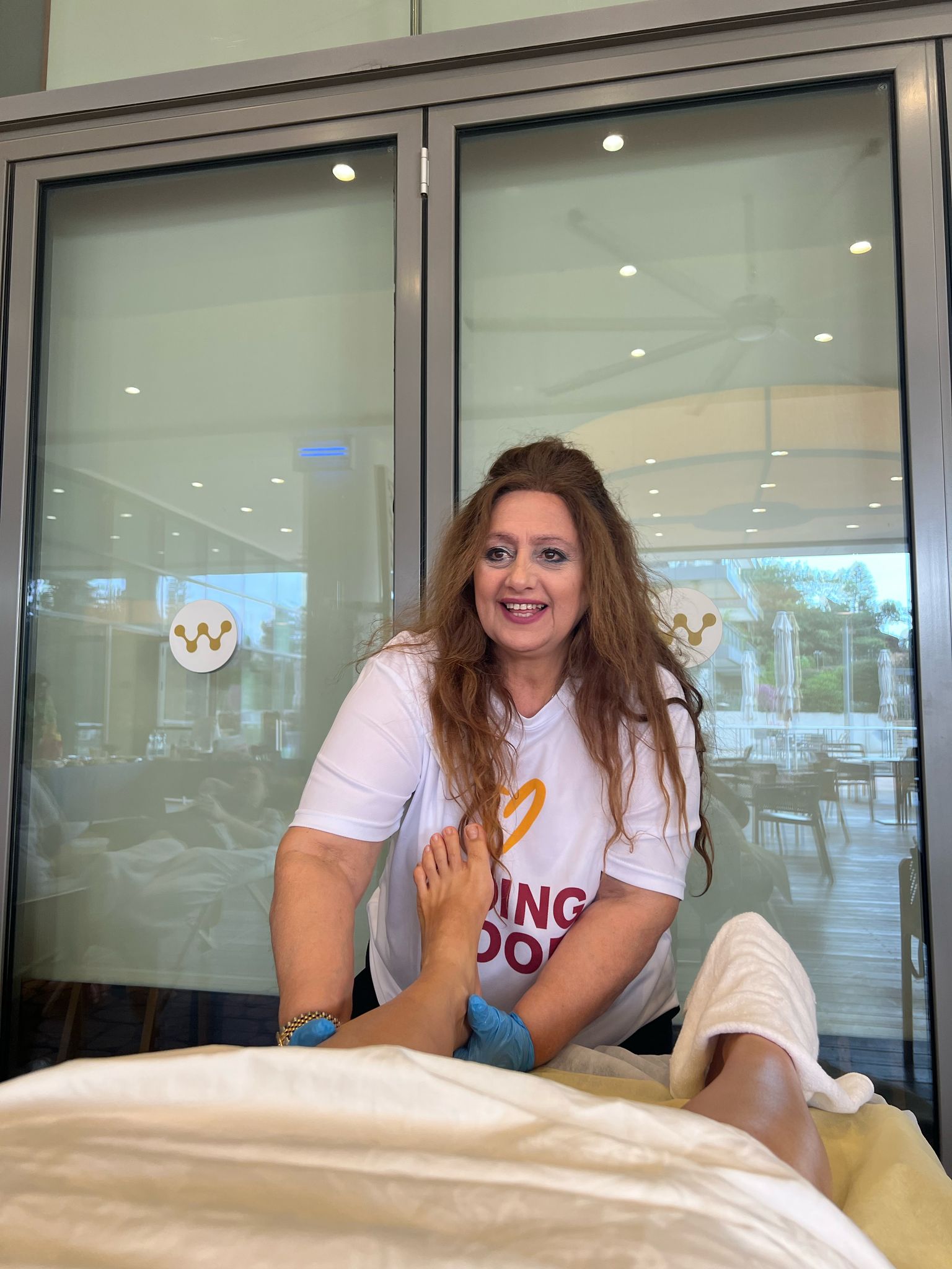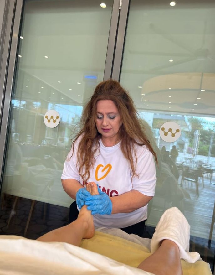 רפלקסולוגיה – טיפול באמצעות נקודות לחיצה בכפות הרגליים, משולב כחלק מהעיסוי